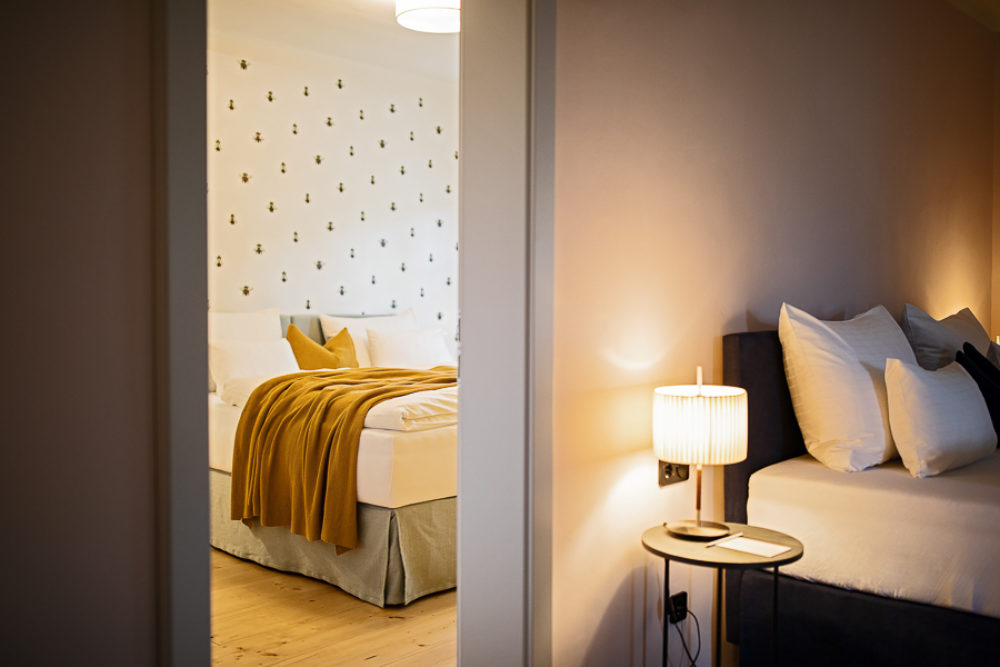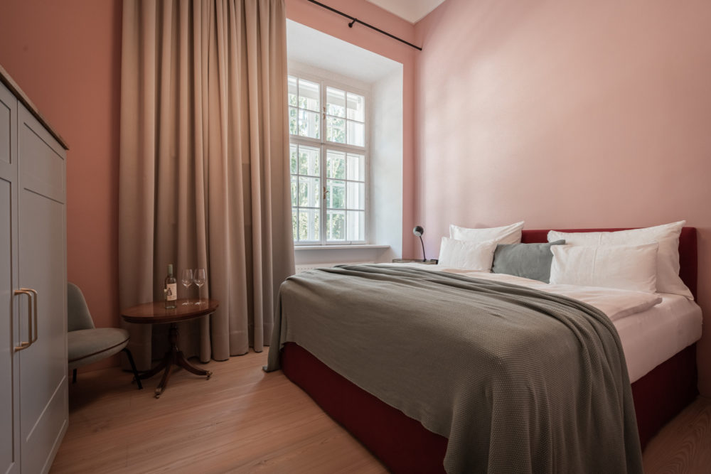 Distributed in various areas of the castle grounds, be that the beautifully renovated residence of the former head gamekeeper of the Esterhazy domain or in the west wing of the Schloss itself, the suites of Hotel Zum Oberjäger are certain to impress. Space in abundance. For yourself, friends or family. Cautiously restored and renovated. Brought confidently yet charmingly into the here-and-now through the aesthetic lens of POLKA. Each unique unto itself. Though divided by category for your convenience: Here we invite you to take a closer look at our Suites M for Medium, L for Large and XL for Extra Large.