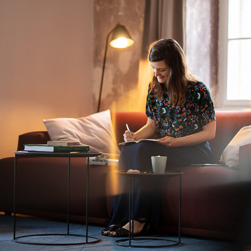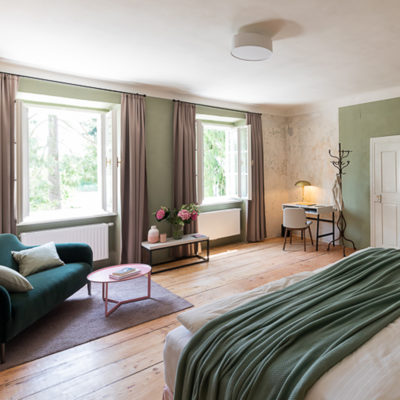 Für das Interieur der Zimmer zeichnet sich Polka verantwortlich. Als Garant für markantes Design in edler Zurückhaltung. Dabei gleicht kein Raum dem anderen. Denn die historischen Möbel darin sind Unikate. Kombiniert werden sie mit edlen Stoffen und einem gewissen Augenzwinkern auf die Natur.
