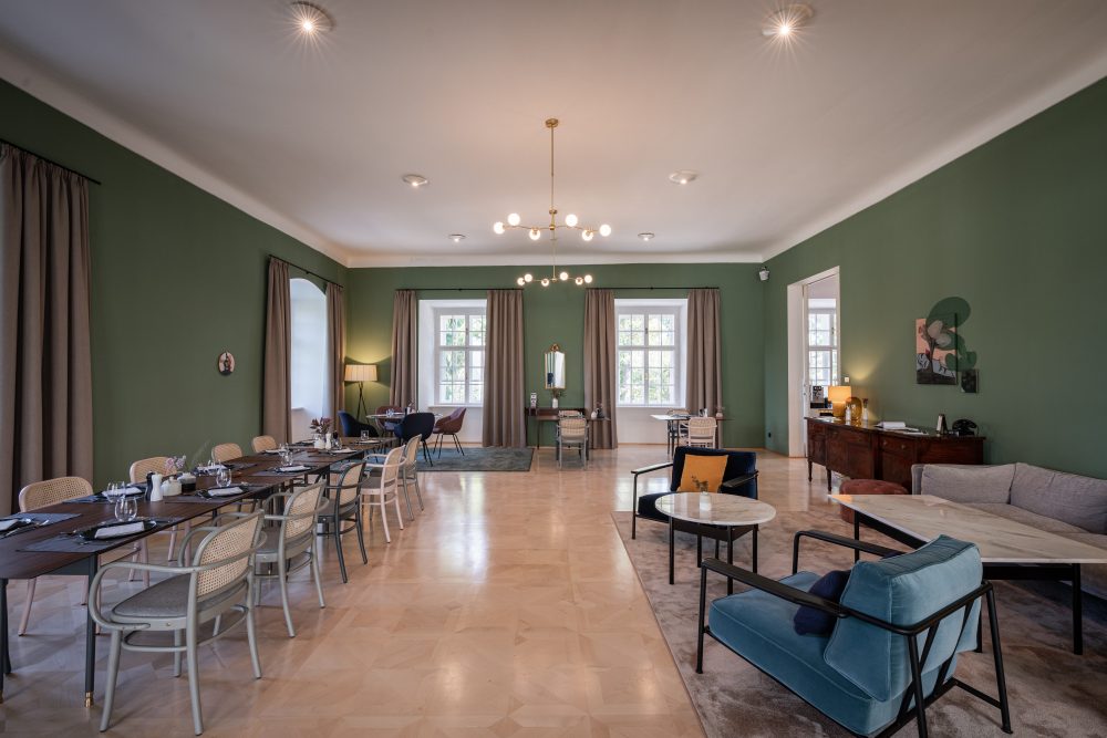Neben den großzügigen Zimmern und Suiten stehen Ihnen als Gast auch die beiden Salons des Schlossensembles zum Verweilen zur Verfügung. Die Salons bieten entspannte Atmosphäre, unsere großzügig gefüllten Honesty Bars und die Möglichkeit, gemeinsam mit Ihrer Begleitung selbst zu kochen.