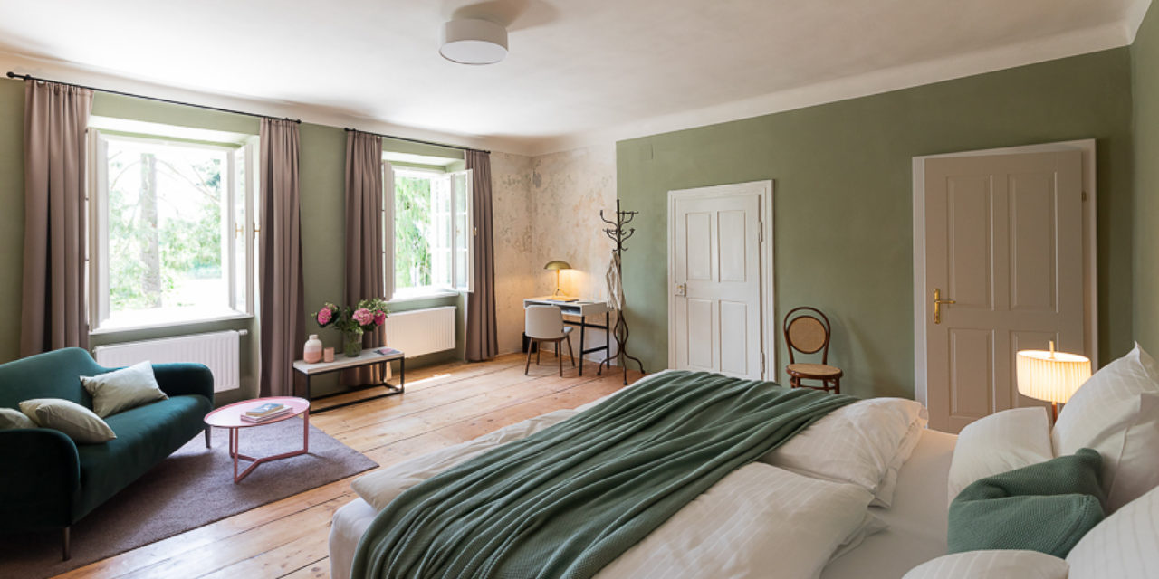 Unsere Zimmer befinden sich im Wohnhaus des ehemaligen Oberjägers der Domäne Esterhazy und im Westflügel des Schlosses selbst. Behutsam restauriert und renoviert ist jedes einzelne ein Unikat.