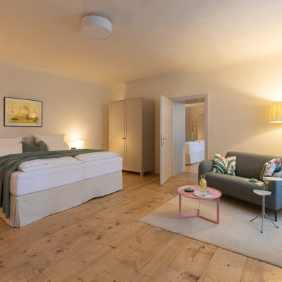 Distributed in various areas of the castle grounds, be that the beautifully renovated residence of the former head gamekeeper of the Esterhazy domain or in the west wing of the Schloss itself, the rooms of Hotel Zum Oberjäger are certain to impress. Cautiously restored and renovated. Brought confidently yet charmingly into the here-and-now through the aesthetic lens of POLKA. Each unique unto itself. Though divided by category for your convenience: Here we invite you to take a closer look at our Double Rooms M for Medium and L for Large.