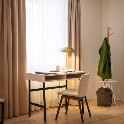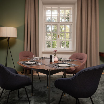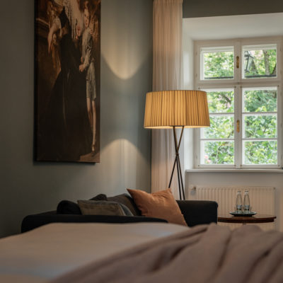 Distributed in various areas of the castle grounds, be that the beautifully renovated residence of the former head gamekeeper of the Esterhazy domain or in the west wing of the Schloss itself, the suites of Hotel Zum Oberjäger are certain to impress. Space in abundance. For yourself, friends or family. Cautiously restored and renovated. Brought confidently yet charmingly into the here-and-now through the aesthetic lens of POLKA. Each unique unto itself. Though divided by category for your convenience: Here we invite you to take a closer look at our Suites M for Medium, L for Large and XL for Extra Large.